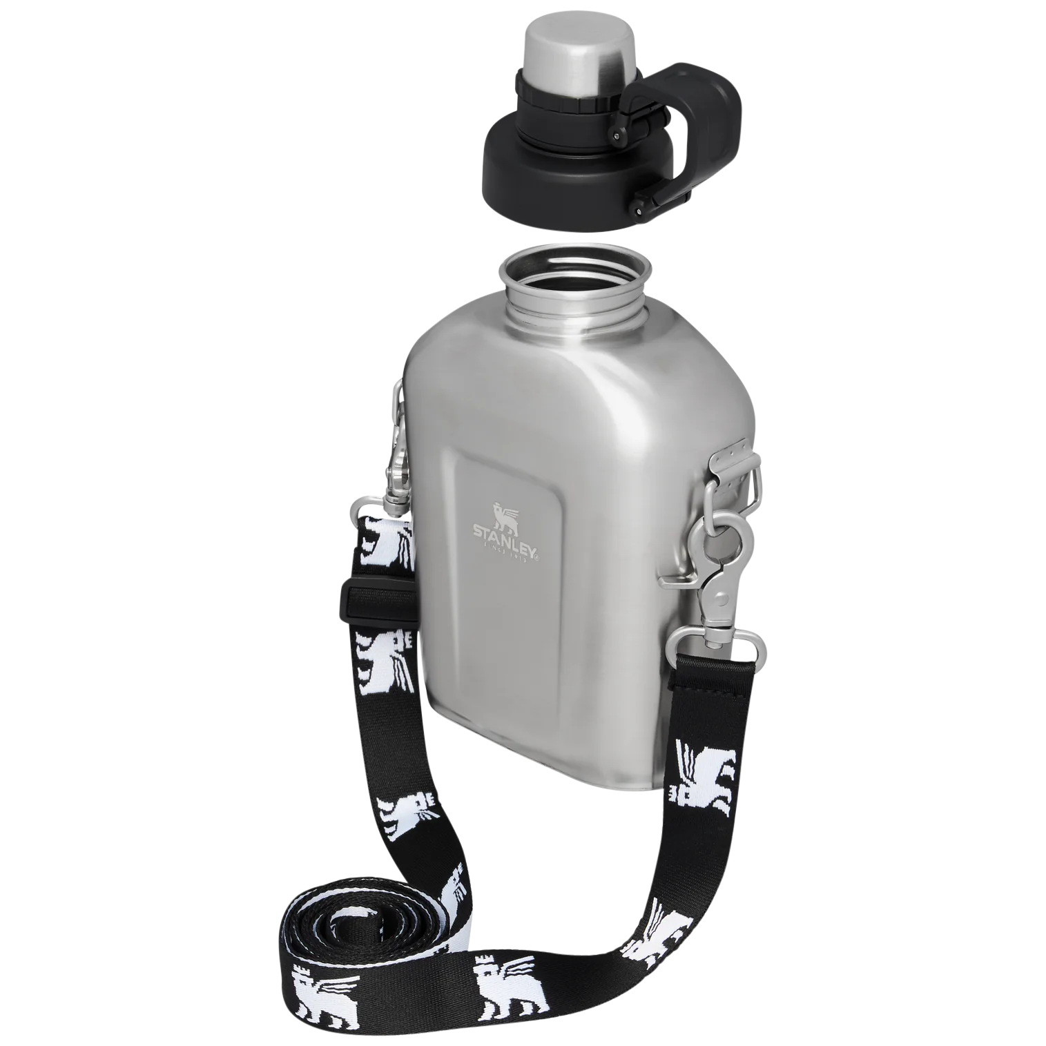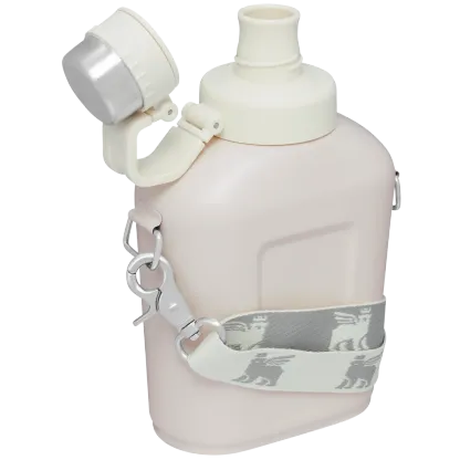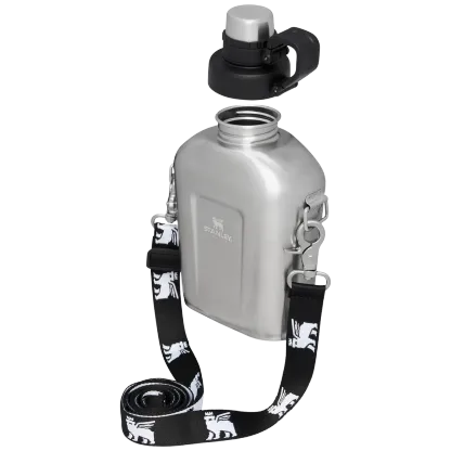 La Stanley Canteen è tornata ed è pronta per la tua prossima escursione urbana o fuga glamping. Riempilo con un litro della tua bevanda preferita: questa borraccia in acciaio inossidabile non isolata perde uno strato di acciaio per consentirti di inserire più sorsi in una bottiglia leggera e compatta. Contiene abbastanza acqua per una giornata in movimento quando stare al caldo o al freddo non è un problema, e le sue dimensioni sono perfette per essere infilate nello zaino o nel bagaglio a mano. Portalo a tracolla: ti permette di avere le mani libere finché non ne hai bisogno, grazie alla tracolla removibile decorata con il nostro iconico orsetto alato. Il berretto è attaccato in modo da non perderlo mai e, con i colori iconici tra cui scegliere, sarai alla moda ma mai assetato.